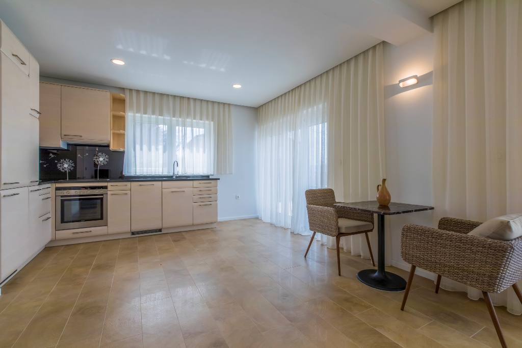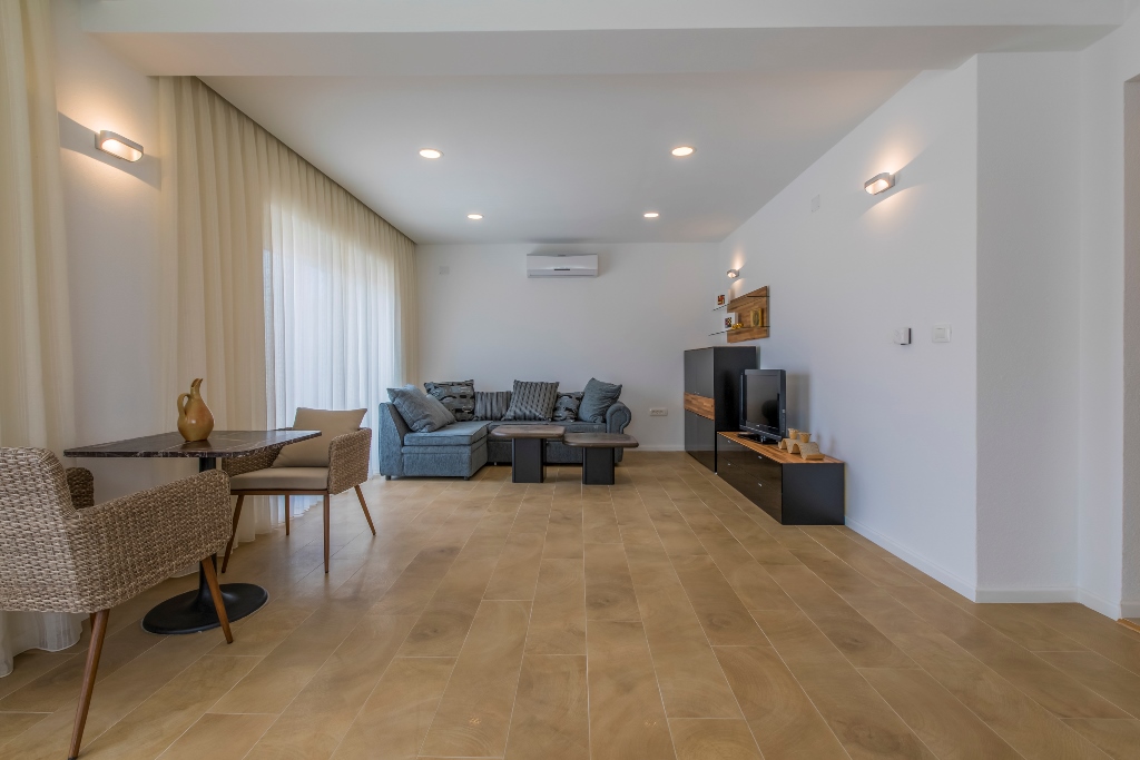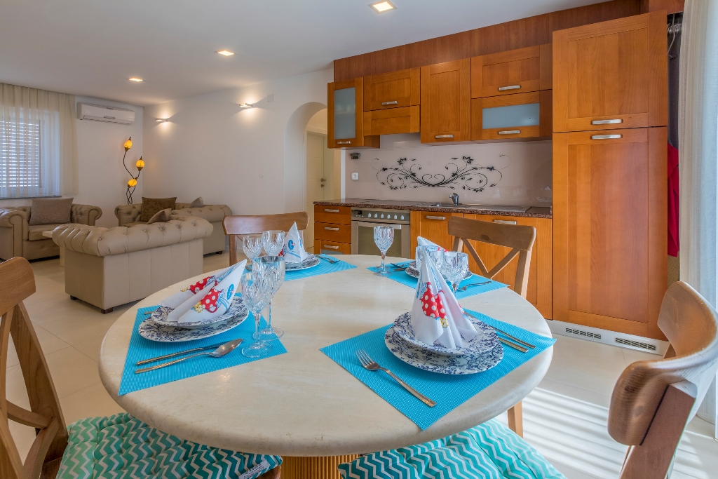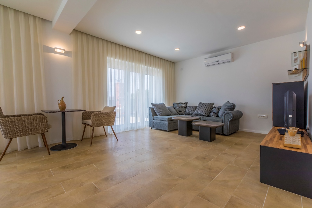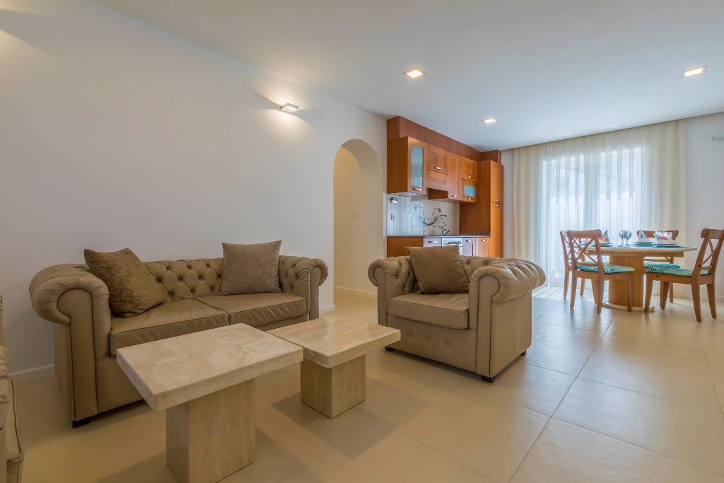 Gegenüber von den Apartments gibt es einen Sportplatz mit einem Tennis-,Baskettball- und einen Fussballfeld. Unter den Apartments ist das Familienrestaurant Filipo. Alle Apartments haben freien zugang zum Wlan. Im Preis Inbegriffen sind Taxen, Nachreinigung beim Auschecken sowie die benützung der Klima. Auf dem Weg zum Strand hat es eine Post, Mini Market, Bäckerei, mehrere Kaffeebars und Restaurants. Es besteht die möglichkeit das Apartment ganzjährig zu mieten.